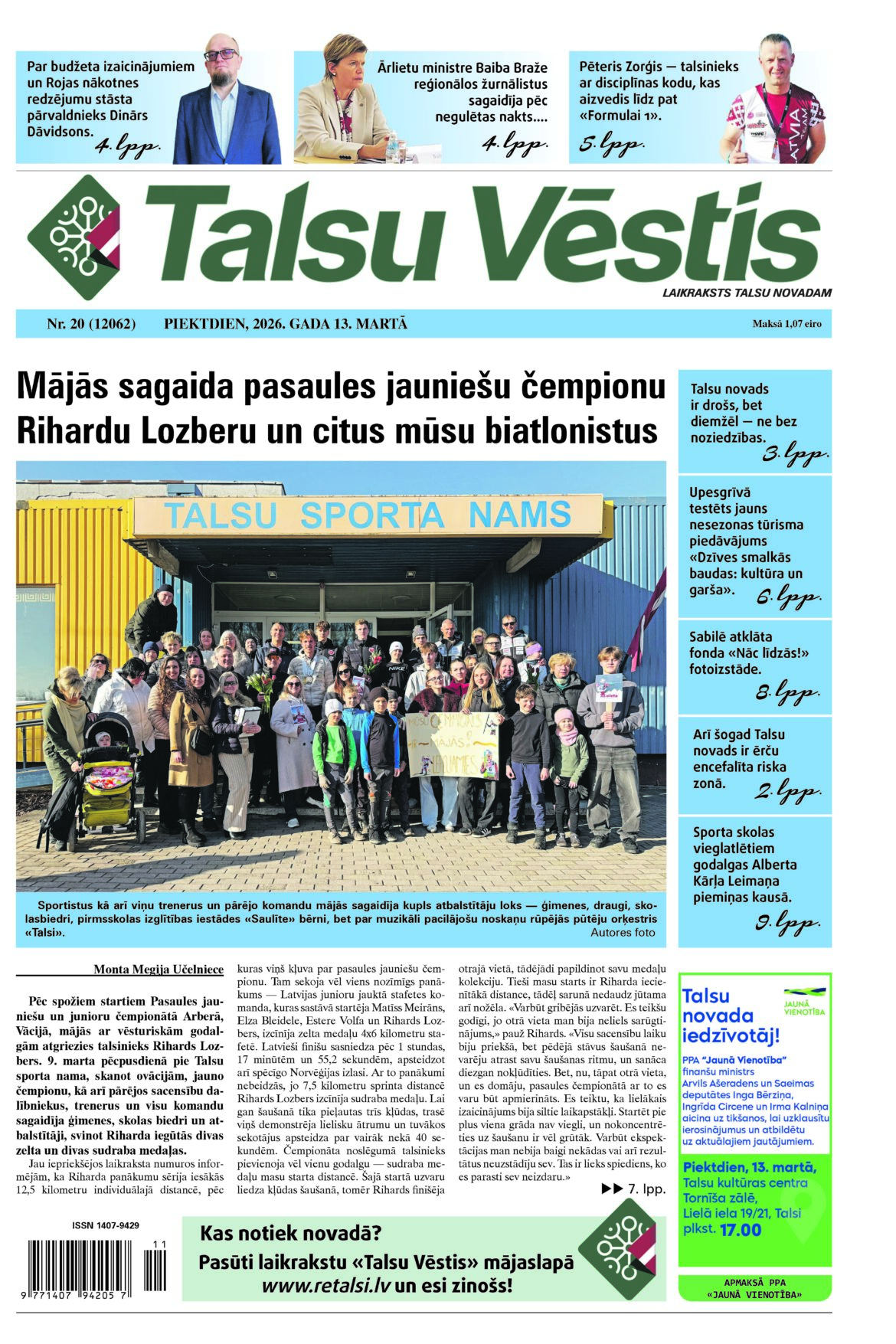«Talsu Vēstis» #20 (12 062) 13-03-2026