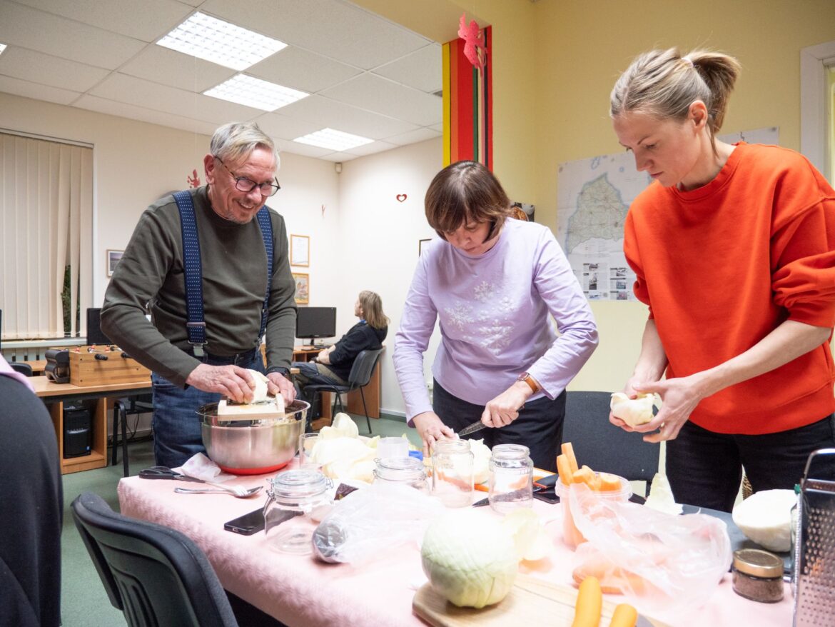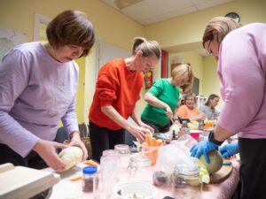 «Jāatzīstas, ka mana pirmā profesija ir konservēšanas tehnologs, esmu beigusi kādreizējo Bulduru sovhoztehnikumu,» stāsta nodarbības organizatore Antra Jaunskalže. «Beidzu mācības 1984. gadā un līdz kolhoza izjukšanai strādāju konservu cehā. Tā ka burciņas esmu daudz pildījusi. Bet, ja runājam par mājas dzīvi, tad, protams, patīk gurķus marinēt un zaptes vārīt. Ir ļoti jauki, ka fermentēšana kļūst arvien daudzveidīgāka un mēs liekam kopā produktus, ko varbūt kādreiz neuzdrīkstējāmies savienot, piemēram, šodien pamēģināju kopā bieti, seleriju un kāpostus. Garšu pasaule kļūst arvien bagātāka.»