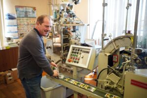 «Kurzemes sēklās» process ir smalkā līdzsvarā starp jaudīgu tehniku un neaizstājamu roku darbu. Pats pirmais posms, protams, ir sēklas nonākšana līdz pārpakošanai. «Kurzemes sēklās» tās nonāk vairumā lielāka vai mazāka apjoma maisos, kastītēs, plastmasas trauciņos un cita izmēra iepakojumos, kas atkarībā no sēklu tipa, raupjuma, smalkuma un dažādām citām īpašībām. Tālāk tās nonāk pie Aigara Rudzika, ilggadēja darbinieka, kas labi pārzina komplicētās un pieklājīga vecuma vācu iekārtas.