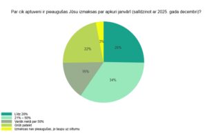 Lielākajai daļai respondentu janvārī, salīdzinot ar 2025. gada decembri, ir bijis būtisks apkures izmaksu kāpums: 33,9 % norādīja uz pieaugumu 21 %—50 % robežās, savukārt 15,3 % aptaujāto izmaksas augušas par vairāk nekā pusi. Šis pieaugums tieši atspoguļojas mājsaimniecību budžetos — 23,7 % respondentu apkurei tērē vairāk nekā 40 % no saviem ikmēneša ienākumiem.